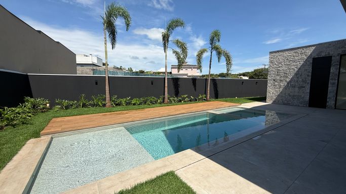 Casa de alto padrão à venda no Condomínio Alphaville Imóvel exclusivo com 337 m² de área construída, em amplo terreno de 607 m², projetado para oferecer conforto, sofisticação e funcionalidade. A residência conta com 3 suítes, sendo uma suíte master, 5 banheiros, sala de estar, sala de jantar, escritório, cozinha, despensa e lavanderia. Na área externa, dispõe de piscina integrada a um belíssimo paisagismo, ideal para momentos de lazer e convivência. Acabamentos de alto padrão com piso laminado e porcelanato. O imóvel oferece ainda 3 vagas de garagem e está localizado em um dos condomínios mais valorizados da região.