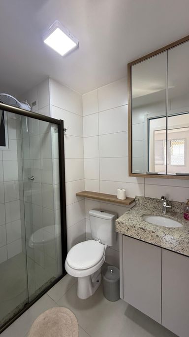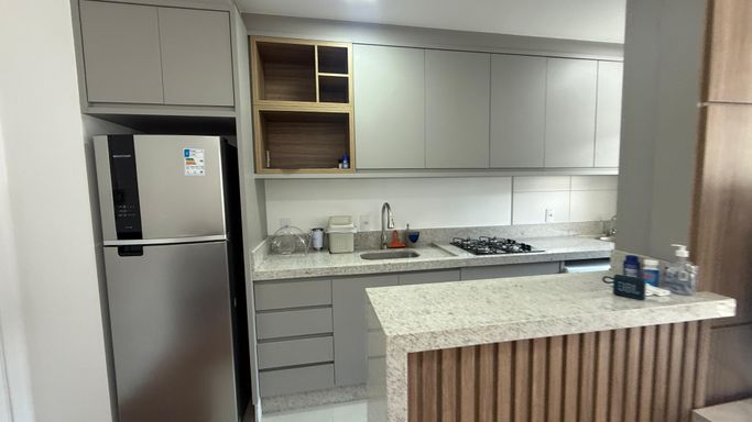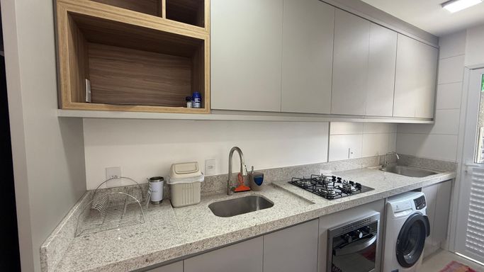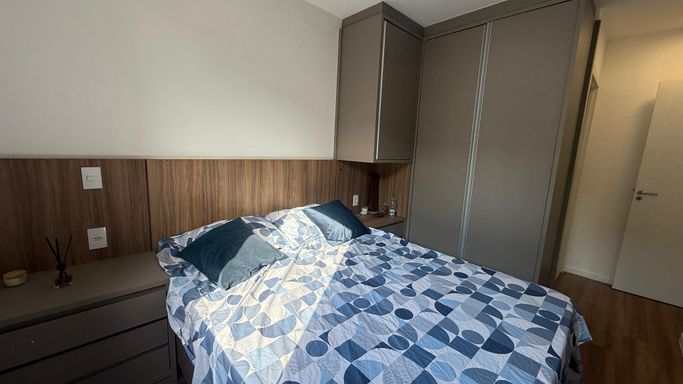 Viva o equilíbrio entre conforto, sofisticação e praticidade em um apartamento de 58m² com dois quartos, sendo uma suíte, duas vagas de garagem e sacada com churrasqueira.
