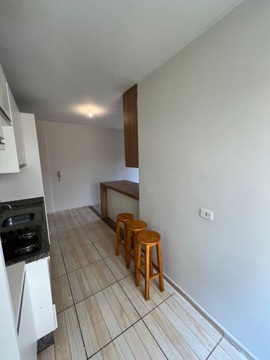 Com 57 m² de área construída, o imóvel conta com 2 quartos, 1 banheiro, sala de estar/jantar, sacada com churrasqueira e cozinha planejada equipada com fogão e micro-ondas. Dispõe ainda de 1 ar-condicionado, sacada adicional e 1 vaga de garagem.