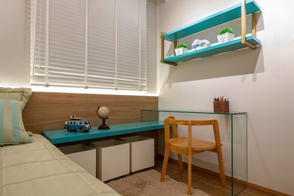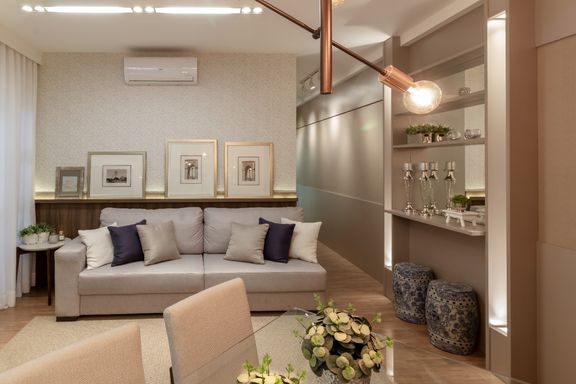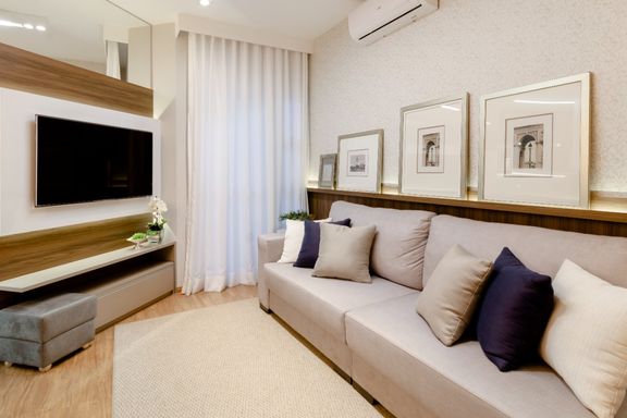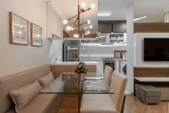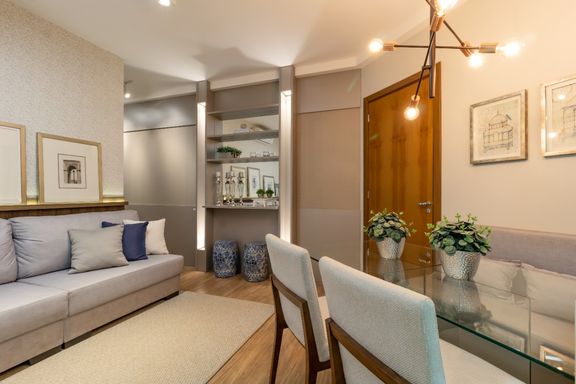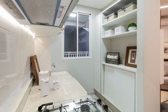 Apartamento com 54m² de área construída, composto por 2 dormitórios, 1 banheiro, sala de estar e jantar, cozinha e lavanderia.