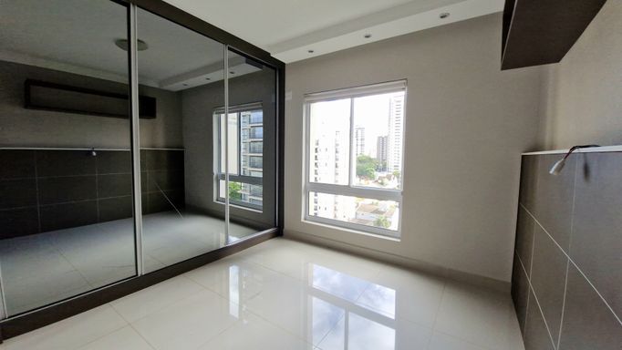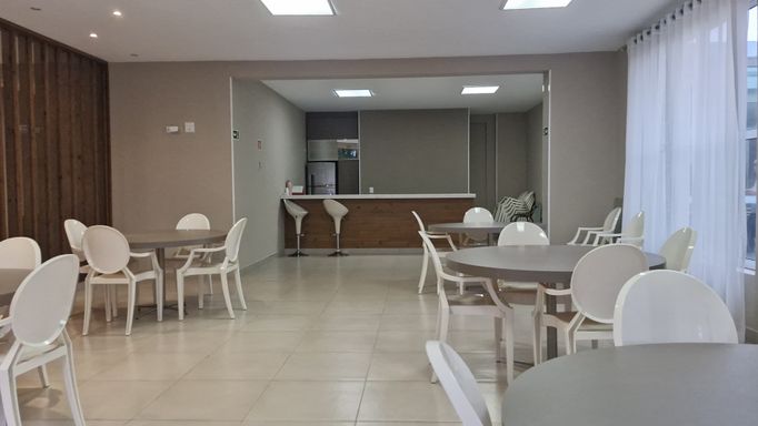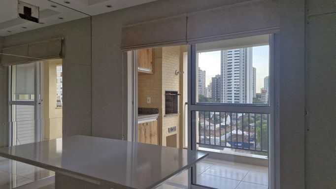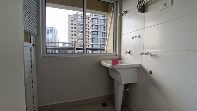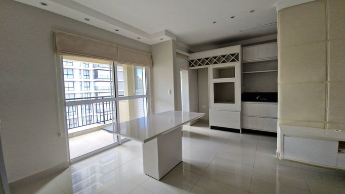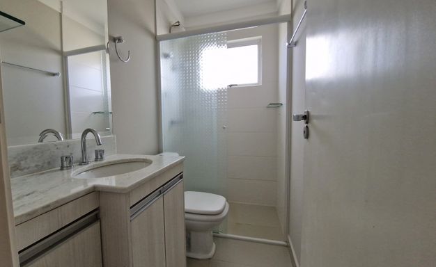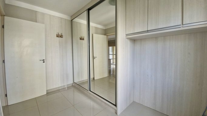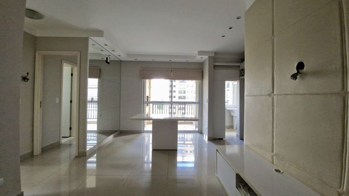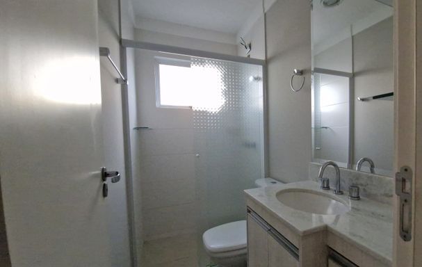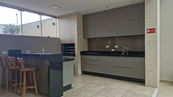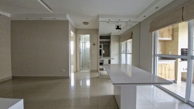 Com 70 m² de área construída, o imóvel conta com 2 quartos, sendo 1 suíte, além de 2 banheiros. Possui sala de estar/jantar, cozinha, lavanderia, sacada com churrasqueira e 2 vagas de garagem.