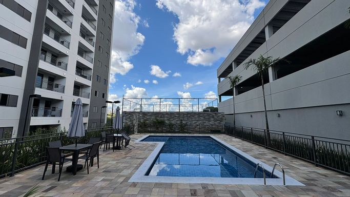 O condomínio oferece excelente estrutura de lazer, com piscina, salão de festas e playground, proporcionando mais comodidade e qualidade de vida para toda a família.