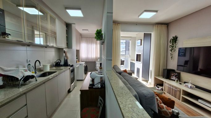 O imóvel conta com 85 m² de área construída, com 3 quartos, sendo 1 suíte, além de 2 banheiros. Possui sala de estar e jantar integradas, cozinha, lavanderia e móveis planejados, com ambientes bem distribuídos e funcionais.