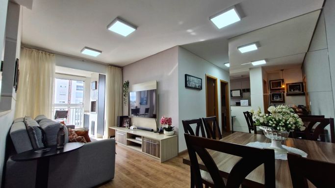 Possui sala de estar e jantar integradas, cozinha, lavanderia e sacada com churrasqueira, ideal para momentos de lazer e convivência. O condomínio oferece lazer completo, proporcionando mais praticidade e qualidade de vida. Dispõe ainda de 2 vagas de garagem.