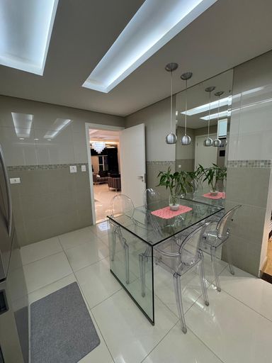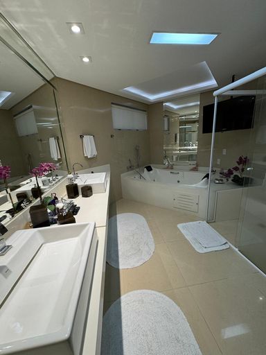 Com 250 metros quadrados, o imóvel impressiona pelo conforto, sofisticação e acabamentos de primeira linha. São quatro quartos, sendo uma suíte e uma suíte master com banheira, além de quatro banheiros.