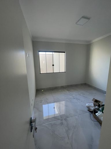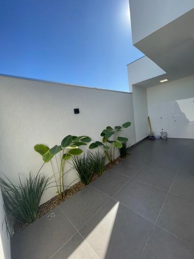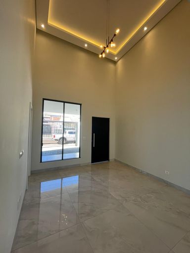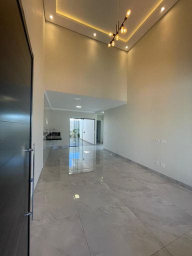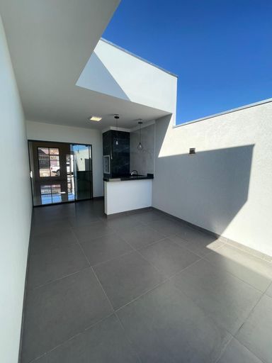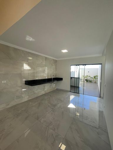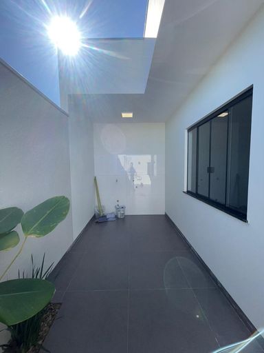 O imóvel conta com 98 metros quadrados de área construída e terreno de 150 metros quadrados. Possui três quartos, sendo uma suíte, e dois banheiros. A sala de estar é integrada à sala de jantar, com pé direito alto que proporciona amplitude e iluminação natural.