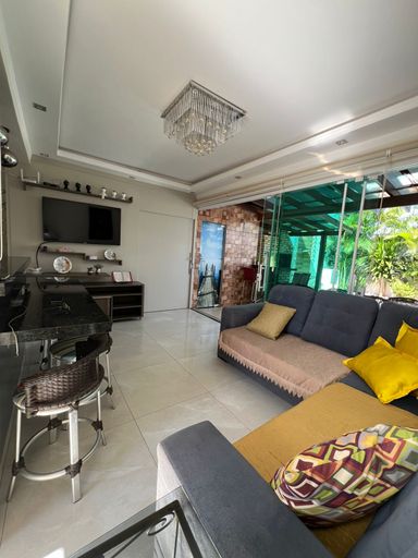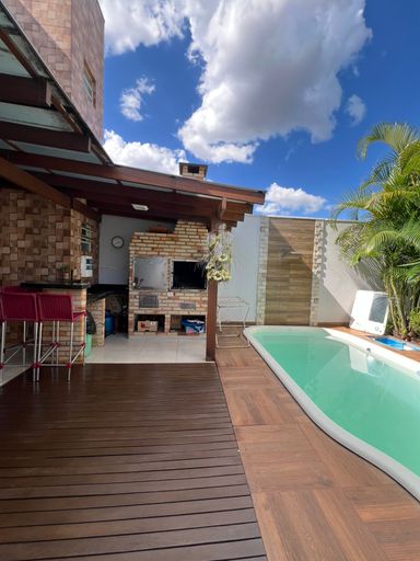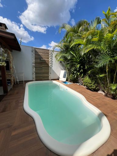 Na área externa, o destaque fica por conta da piscina integrada à área gourmet com churrasqueira, perfeita para momentos especiais com a família e amigos.