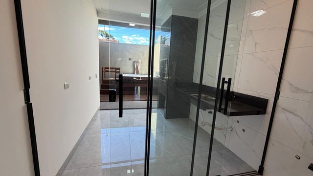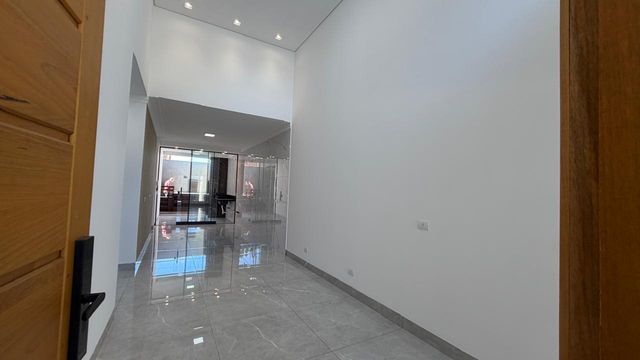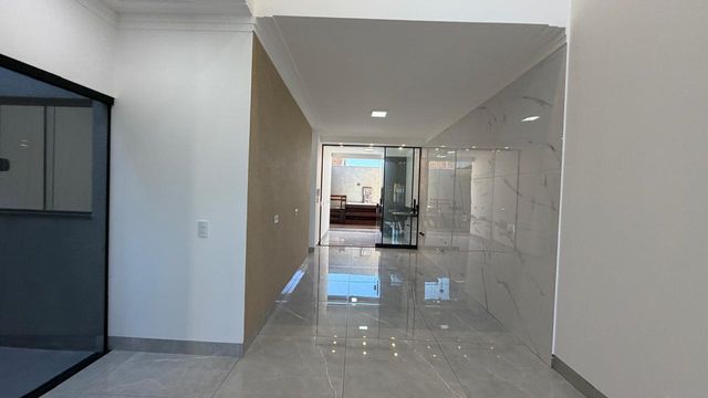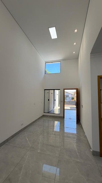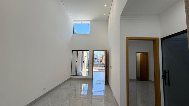A área social é composta por sala de estar e jantar integradas, com pé direito alto, proporcionando mais amplitude e iluminação natural. A casa ainda dispõe de cozinha, lavanderia e 2 vagas de garagem.