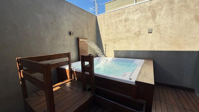 Para momentos de lazer, o imóvel oferece uma área gourmet com churrasqueira e jacuzzi, ideal para receber amigos e familiares.