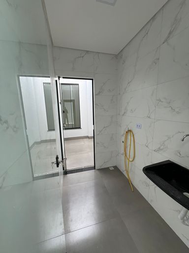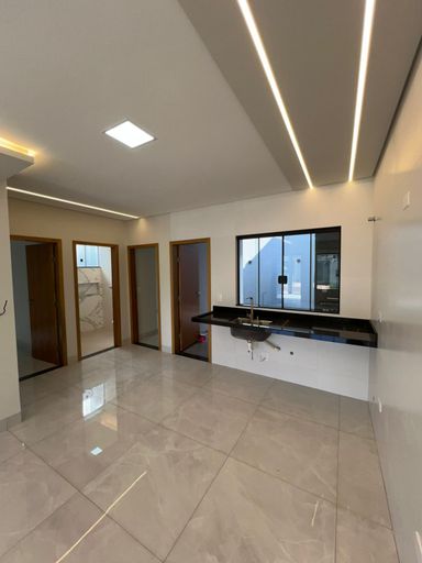 Conta com sala de estar e sala de jantar, com pé-direito alto, que proporciona maior sensação de amplitude e excelente iluminação natural. A cozinha conjugada integra os ambientes de forma prática e moderna, conectando-se à área gourmet com churrasqueira, ideal para momentos de lazer e convivência.