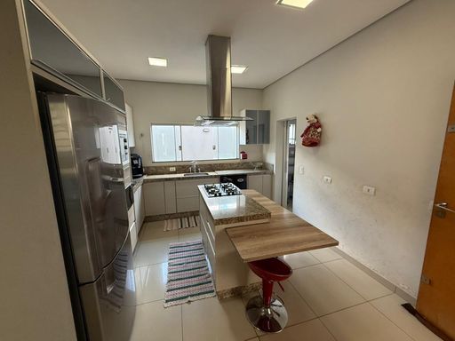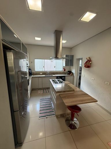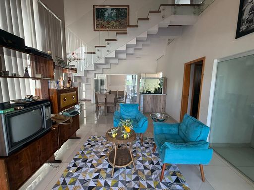 Com 345m² de área construída em terreno de 345m², a casa conta com 3 quartos, sendo 1 suíte com closet, além de 3 banheiros e lavabo. Possui sala de estar e sala de jantar amplas, cozinha com despensa e móveis planejados que trazem mais praticidade e elegância aos ambientes.
