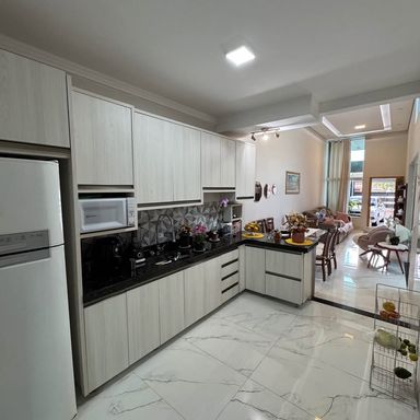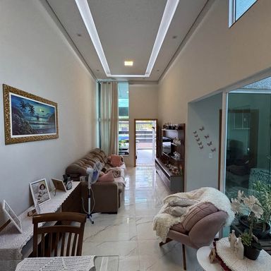 Ambientes amplos e bem distribuídos, com sala de estar e jantar integradas, iluminação completa e ar-condicionado. A casa também conta com área de serviço, despensa nos fundos e 2 vagas de garagem paralelas.