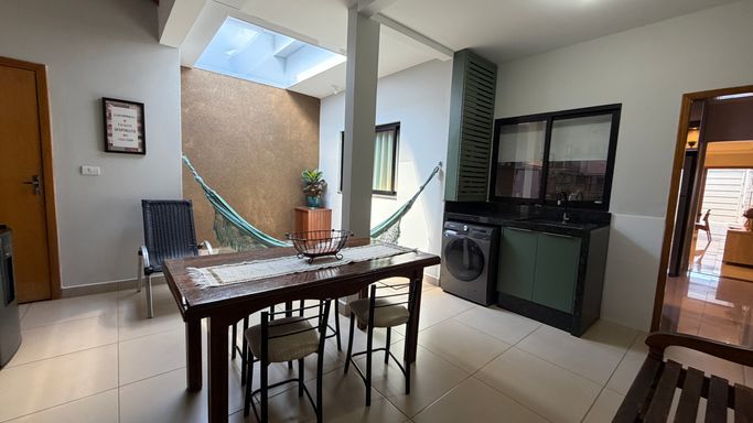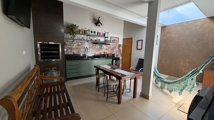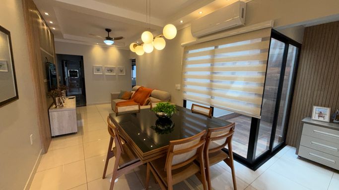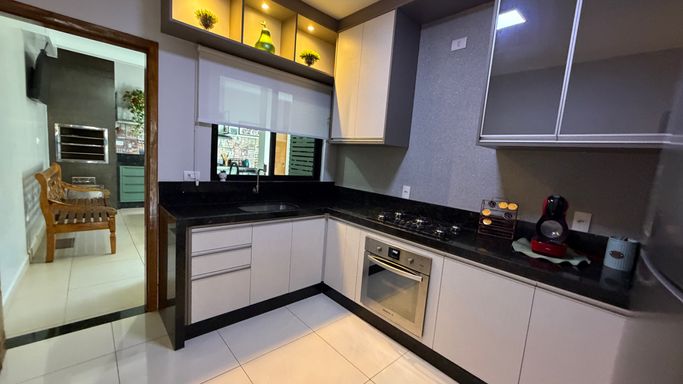 Com 120m² de área construída em terreno de 150m², o imóvel conta com 3 quartos, sendo 1 suíte, 2 banheiros, sala de estar e jantar integradas, além de móveis planejados que agregam praticidade e sofisticação aos ambientes.