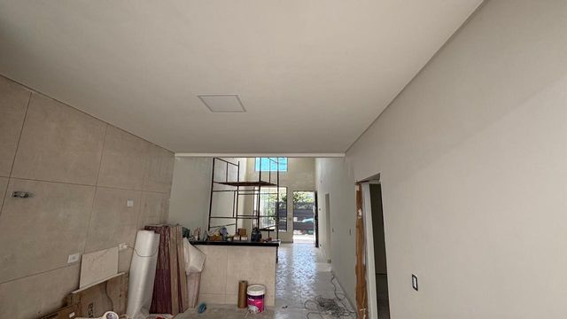 O imóvel conta com 3 quartos, sendo 1 suíte, além de sala de estar integrada com jantar, com pé direito alto, proporcionando mais amplitude e iluminação natural. Possui cozinha, lavanderia e 3 banheiros.