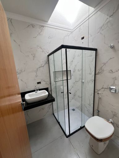 Conta com 3 quartos, sendo 1 suíte, sala de estar integrada com jantar, cozinha, lavanderia e 2 banheiros. Além disso, possui 2 vagas de garagem.