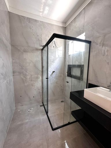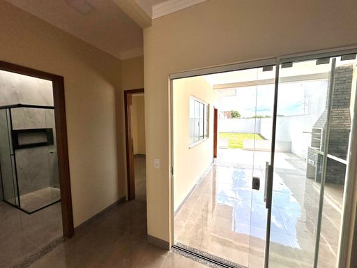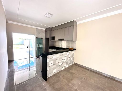 A casa conta com três quartos, sendo uma suíte, além de dois banheiros. Dispõe de sala de estar e sala de jantar, cozinha com armários, lavanderia e uma área gourmet com churrasqueira, perfeita para momentos de lazer. Possui ainda quatro vagas de garagem e um quintal amplo, garantindo mais espaço e versatilidade.
