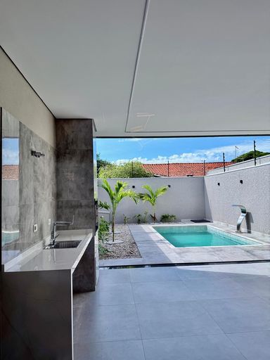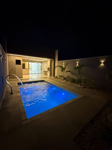 O destaque fica por conta da piscina com hidromassagem e da iluminação em LED, que trazem ainda mais sofisticação ao imóvel.