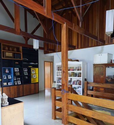A residência possui sala de estar, sala de jantar, oferecendo ambientes amplos e versáteis para convivência e recepção. A varanda complementa o imóvel, proporcionando um espaço agradável para lazer e contemplação. Conta ainda com 3 vagas de garagem.