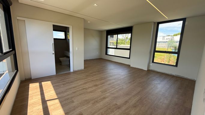 Acabamentos de alto padrão com piso laminado e porcelanato. O imóvel oferece ainda 3 vagas de garagem e está localizado em um dos condomínios mais valorizados da região.