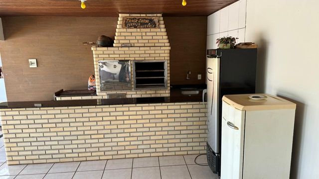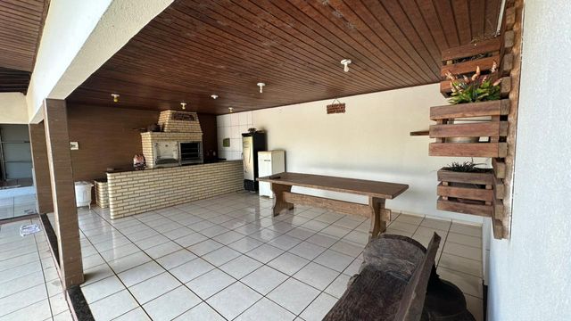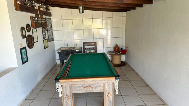 Conta com 2 quartos, sendo 1 suíte, além de sala de estar e jantar integradas, cozinha e lavanderia. A área externa possui espaço gourmet com churrasqueira e mesa de sinuca, ideal para momentos de convivência.
